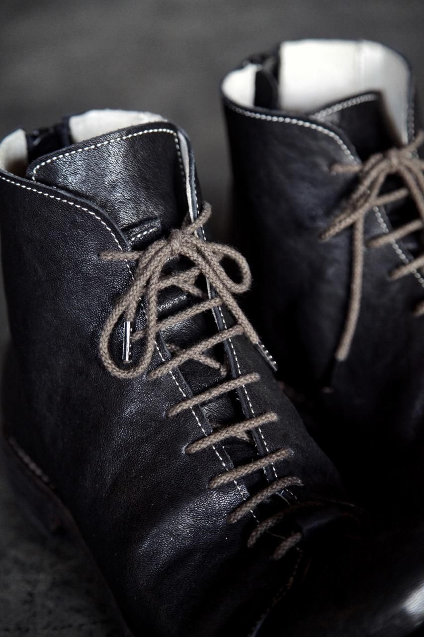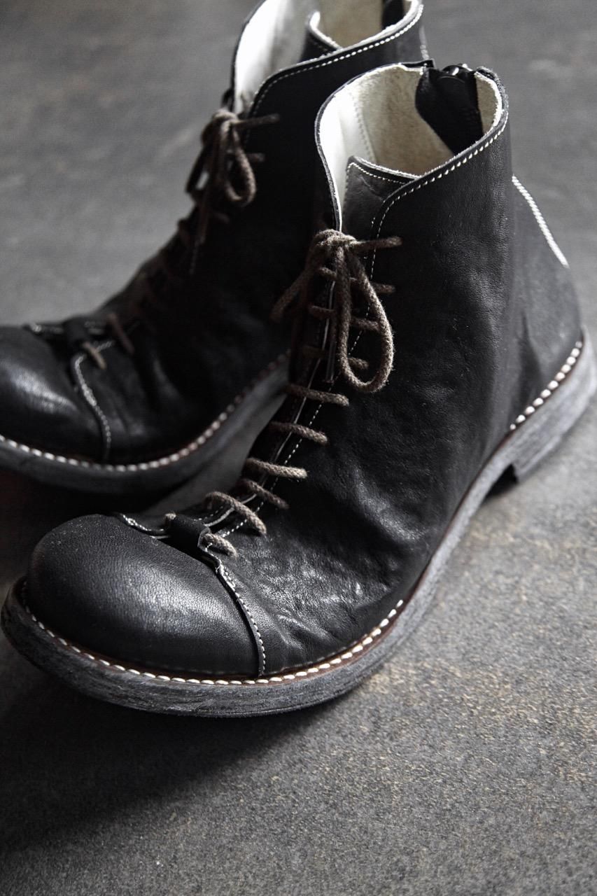 ヴィンテージのコンバットブーツのようにシュータンに紐通し用のタブが付いているブーツです。