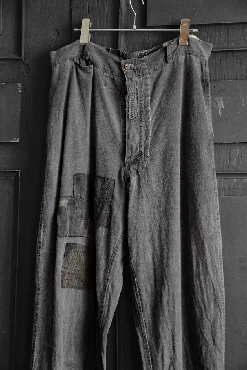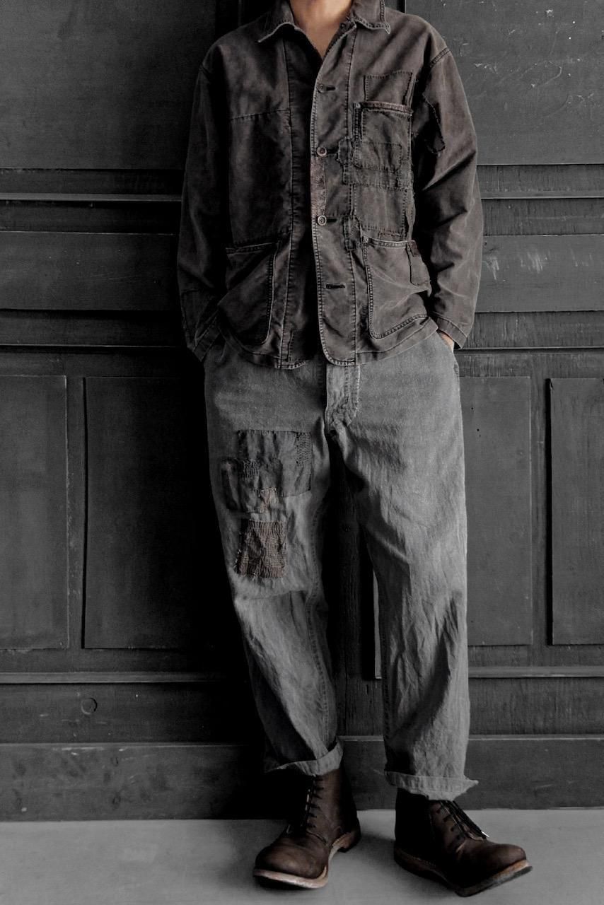 LunPeng "Linen Cotton Work trousers" repaired ver. dyed with sumi
