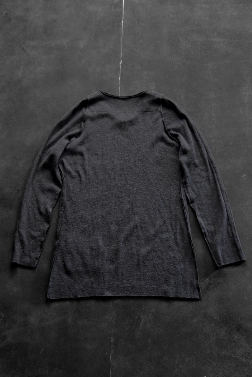 切りっぱなし仕様になっているのはデザイン製だけでなく、シーム(縫い目)を外側にすることで内側の凸凹感をなくすため。袖の付け方も特殊で、肩の収まりが良く気持ちよくきていただけます。